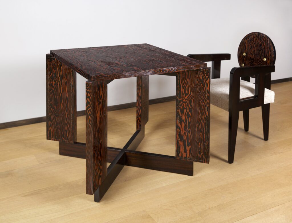Dinning table in macassar with brass nails with two extensions.