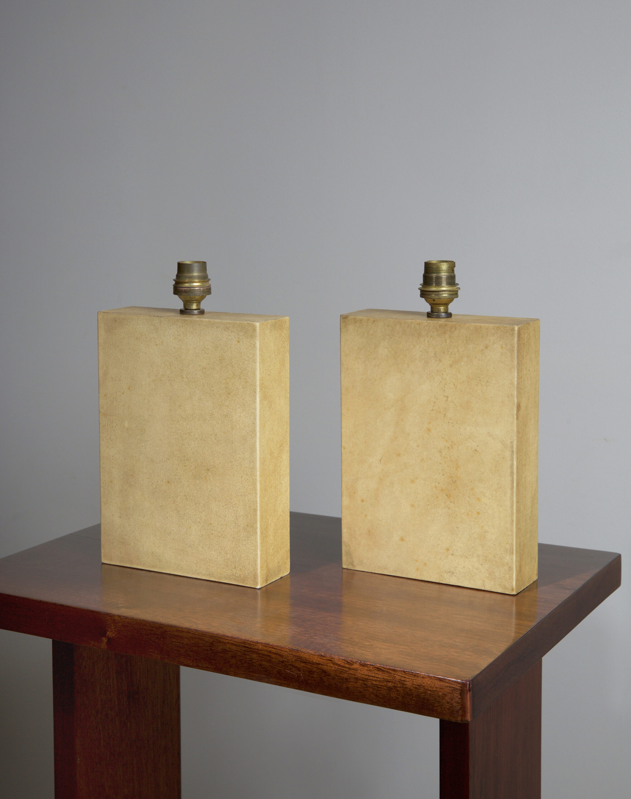 Two ottomans attributed to Jacques Adnet, oak legs.